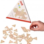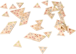 Ova igra ne samo da osigurava sate zabave, već istovremeno vježba zapažanje i logičko razmišljanje djece. Sadrži 76 trokutastih dijelova s šarenim brojevima i uputama za uporabu. Zbog svoje drvene izrade nudi ugodan taktilni doživljaj.