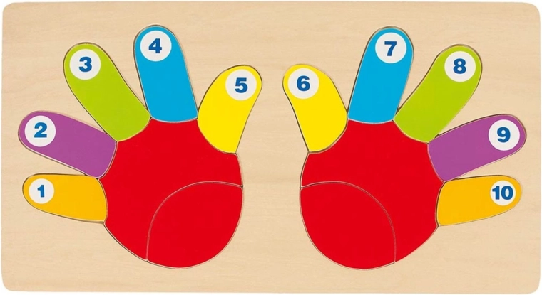 Drvene slagalice s umetkom Ruke od GOKI-ja idealan su izbor za prve logičke igre djece od 2 godine. Ilustracije ljudskih ruku prirodno pomažu učiti brojanje na prste i prepoznavanje oblika. Masivna drvena podloga osigurava stabilnost i lako slaganje.