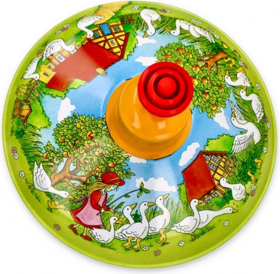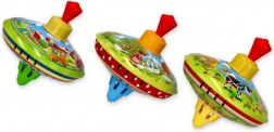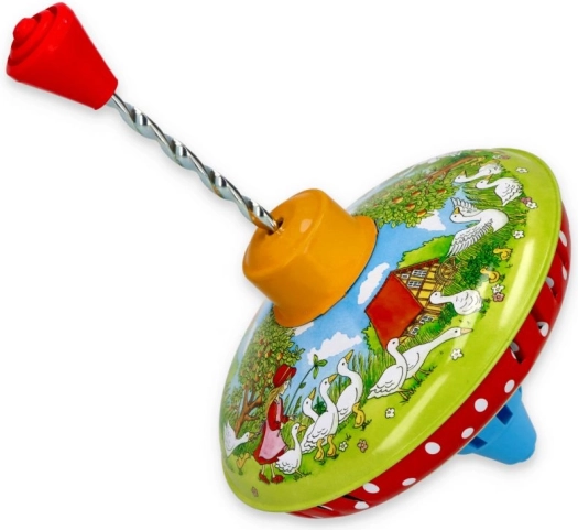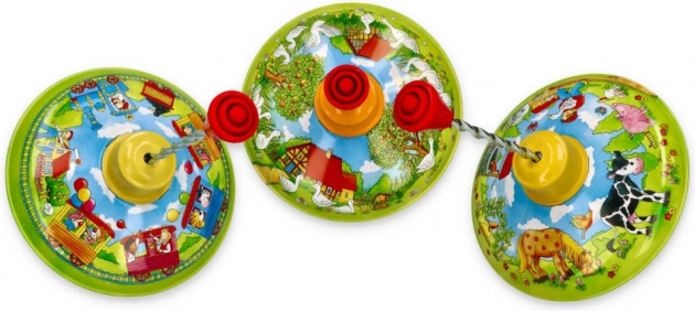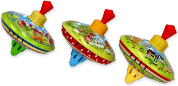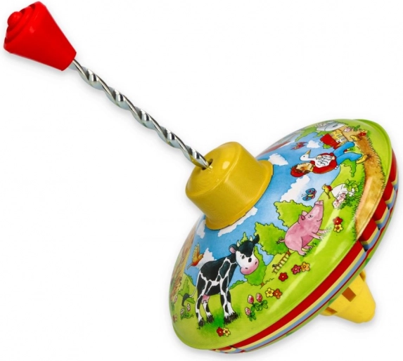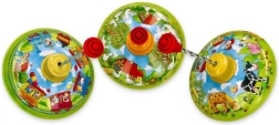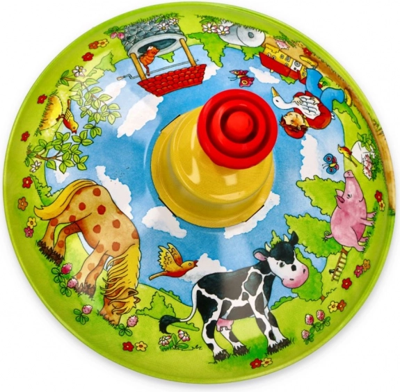 Podarite svom djetetu radost s ovim klasičnim zvrkalom, koje je izvor beskrajne zabave. Izrađeno je od metala, što osigurava dug vijek trajanja, a ukrašeno je veselim prikazima s farme. Zvrkalo pri brzoj vrtnji dodatno zuji, što privlači pozornost djece.