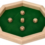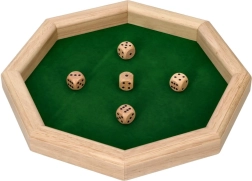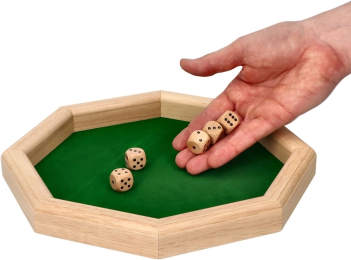 Ploča za igru izrađena je od drveta, a njezina je površina presvučena baršunom za tiši doskok i bolju kontrolu bacanja. U kompletu su drvene kockice koje ugodno leže u ruci. Kompaktne dimenzije omogućuju lako prenošenje i odlaganje.
