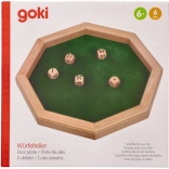 Stilna društvena igra JAMB od GOKI za zabavu s obitelji i prijateljima. Igra se s 5 kockica, bilježe se kombinacije, a cilj je osvojiti što više bodova. Kvalitetna drvena izrada i baršunasta ploča za igru osiguravaju ugodno tihe bacanja. Kompaktna dimenzija 25,7 × 25,7 cm, kockice 1,6 cm.