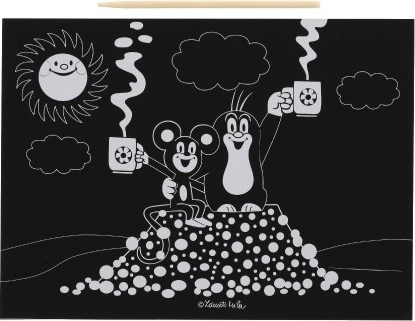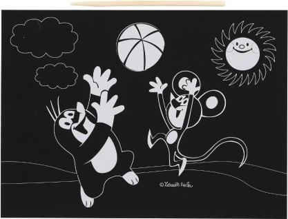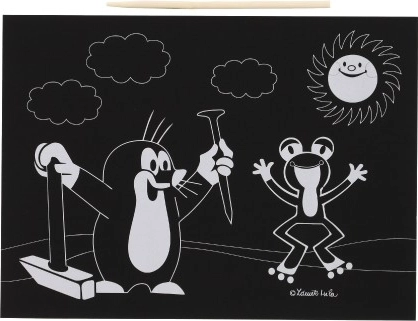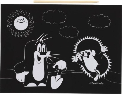 Uživajte u kreativnoj zabavi sa slikovnicom za struganje s motivom Krtka i njegovih prijatelja. Uz pomoć drvene špatule otkrivaju se skrivene šarene slojeve.