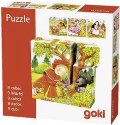 Dječje drvene kocke s bajkama Goki donose radosno slaganje i prva pripovijedanja priča. Od 9 kocki složit ćete 6 koloriranih scena iz omiljenih klasika – primjerice Crvenkapica, Snjeguljica i sedam patuljaka, Trnoružica, Ivica i Marica ili Pepeljuga. Svako okretanje kocke otkriva novi dio slike, a djeca vježbaju logiku i strpljivost.