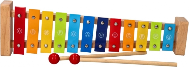 Izdržljiv drveni okvir i 12 metalnih tipki pružaju ugodan zvuk i dugu trajnost igračke.