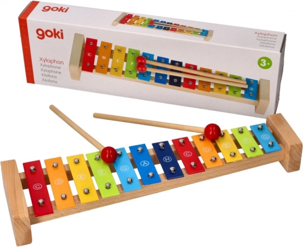Otkrijte radost glazbe s šarenim Goki ksilofonom koji ima 12 metalnih tipki, drveni okvir i 2 palice. Djeca lako usvajaju osnove ritma i tonova, a uz priloženu pjesmaricu mogu prema bojama odsvirati jednostavne melodije. Idealan za razvoj muzikalnosti, slušnog opažanja i fine motorike. Prikladno od 3 godine.