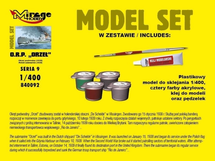 Komplet sadrži plastični model podmornice za lijepljenje.