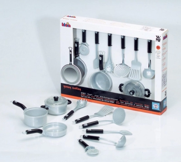 Sadrži 9 stavki uključujući: 2 lonca, tavu, rezač za pizzu, kutlaču i još toga.