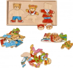 Ova popularna drvena sklapalica nudi djeci zabavnu igru sa oblačenjem medvjeđe obitelji. Sklapolica se sastoji od 36 dijelova, koji uključuju 12 različitih setova odjeće, zahvaljujući kojima djeca mogu razvijati svoju maštu i kreativnost.