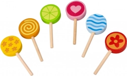 Otkrijte radost šarenih i drvenih igračaka u obliku ukusnih lizalica od Goki. Ovaj set sadrži šest različitih dizajna, uključujući pruge, cvijeća i srca. Svaka od njih je idealna za dječju maštu i igru na istoj mjeri.