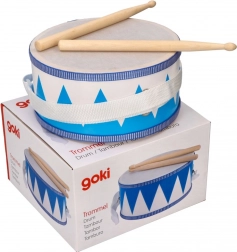 Ovaj dječji bubanj marke Goki opremljen je remenom za udobno nošenje na tijelu, što omogućuje djeci da tijekom sviranja koriste obje ruke slobodno.