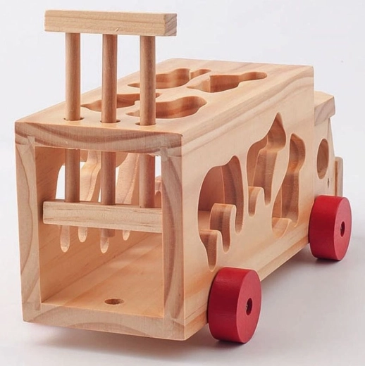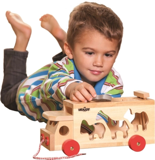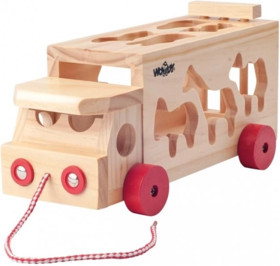 Drveni kamion na povlačenje sa životinjama i umetaljkom