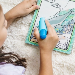 Vodena bojanka je dizajnirana da pruži ponovnu zabavu. Dovoljno je napuniti olovku vodom i gledati kako slike oživljavaju na dodir vode. Kada se osuši, djeca mogu početi ispočetka.