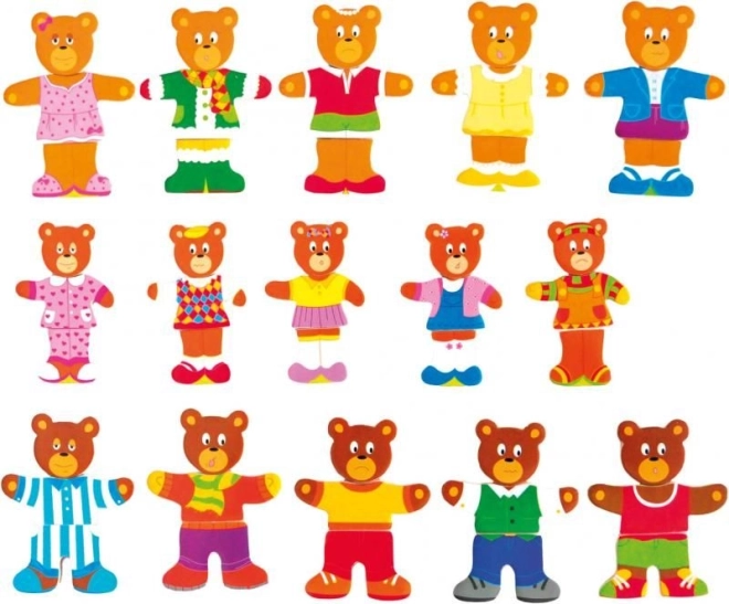 Zabavna drvena slagalica za presvlačenje WOODY s medvjeđom obitelji nudi djeci bezbroj kombinacija glava, tijela i nožica. U pakiranju se nalazi 57 dijelova posloženih u drvenoj kutiji s poklopcem–podlogom. Igračka potiče razvoj fine motorike, kreativnosti i kombinatorike te se nadovezuje na češku tradiciju kvalitetnih drvenih igračaka.