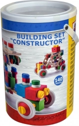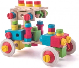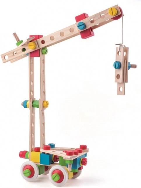 Ovaj raznoliki set s 140 dijelova omogućuje djeci slaganje vozila, oblika i jednostavnih konstrukcija. Šareni vijci, spojnice i kotači potiču na istraživanje, dok drveni elementi daju igrački ugodan prirodni karakter. Sve je spremljeno u izdržljivoj kanti koja održava red u dječjoj sobi.