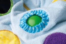 Igračka je izrađena od kvalitetnih materijala i dizajnirana tako da stimulira osjetilne doživljaje djece zahvaljujući raznovrsnim teksturama i bojama.