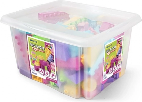 Ovaj šarolik set građevinskih kockica donosi djeci sate stvaralačke zabave. Dijelovi su oblikovani tako da ih male ruke lako uhvate i spoje, što potiče samostalnu igru i zajedničko građenje s roditeljima ili braćom i sestrama. Prozirni spremnik s poklopcem na klik drži sve komponente na okupu i osigurava pregledno skladištenje.