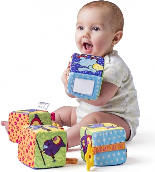 Otkrijte čaroliju prvih igara s tekstilnim kockama NINY. Svaka kocka je pažljivo osmišljena za najmlađu djecu, sigurna na dodir i prepuna poticaja koji razvijaju sluh, vid i dodir. Zahvaljujući mekoj izradi idealne su za male ručice i sigurne za igru na podu i u krevetiću.