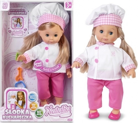 Lutka Natalia Slatka Kuhinjica veličine 42 cm odjevena je u preslatku kuharsku odoru i postat će izvrsna prijateljica svakoj maloj kuharici. Uči djecu ne samo kulinarskim vještinama, već i recitira pjesmicu te pjeva 2 pjesme.