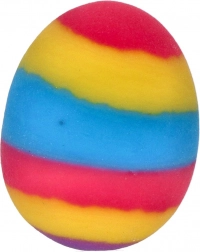 Gumena loptica u obliku jajeta donosi radost zahvaljujući svom jedinstvenom dizajnu i šarenim bojama koje privlače na pokret.