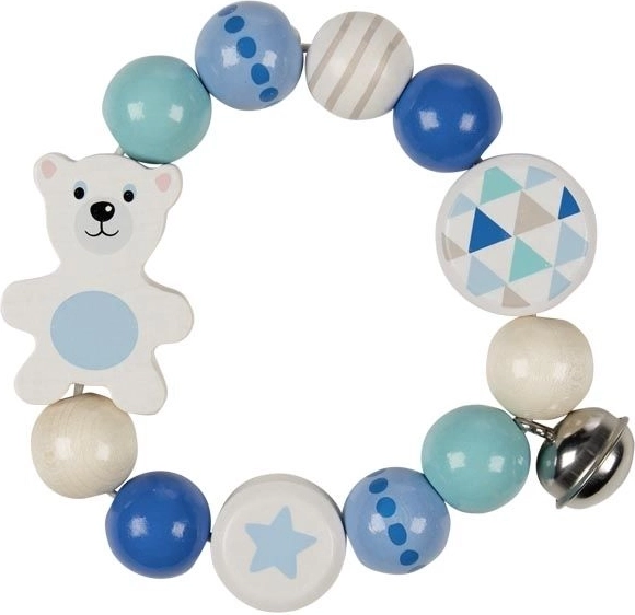 Ova drvena zvečkajuća igračka dizajnirana je tako da potiče razvoj senzornog opažanja i podržava djecu u otkrivanju svijeta oko sebe. Sastoji se od fleksibilnog šarenog prstena s nježnim pastel tonovima i ugrađenim zvončićem. Mali polarni medvjedić je dodatni privlačan element za male ruke.