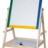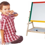 Dječja obostrana ploča s krednom i magnetskom površinom nudi beskrajne mogućnosti za kreativne i obrazovne aktivnosti. Zahvaljujući svom šarolikom dizajnu postat će atraktivan dodatak dječjoj sobi.