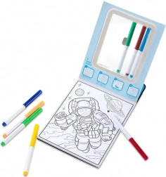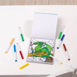 Ovaj kreativni set spaja blok bojanki i obojene flomastere u jednom. Djeca uranjaju u svijet pirata, zmajeva, astronauta i šumskih prizora te mogu obojiti svaki detalj prema svojoj mašti. Kompaktne dimenzije 15 × 25 cm olakšavaju rukovanje malim rukama i čine bojanku sjajnim suputnikom na putovanjima.
