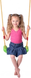 Zahvaljujući maksimalnoj nosivosti od 80 kg, sjedalo je idealno za djecu od 6 godina i podnosi intenzivnu svakodnevnu upotrebu. Metalni prstenovi na krajevima užadi osiguravaju brzu montažu na većinu uobičajenih kuka i konstrukcija.
