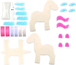Dio seta obuhvaća sve što vam je potrebno za izradu čarobnog plišanog jednoroga, uključujući ružičastu grivu, plava kopita i razigrane vrpce. Završeni jednorog bit će sjajan prijatelj za svakodnevnu igru ili ukrasni element.
