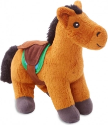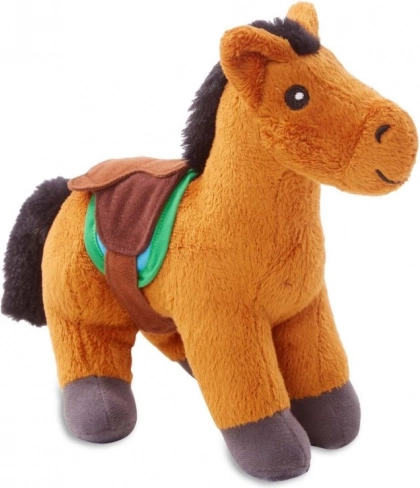 PlišanI konjić s ugodnom površinom, zelenim sedlom i čvrstim detaljima idealan je za maženje i igru.
