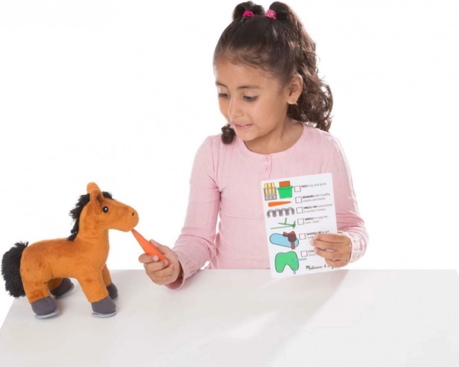 Igračka potiče razvoj empatije, igre uloga i mašte. Djeca mogu konjića češljati, hraniti i smještati u malu štalu, pritom slijedeći jednostavne kartice sa zadacima. Set je prikladan za djecu od 3 godine i ispunjava norme CE.