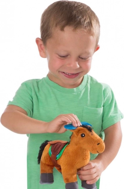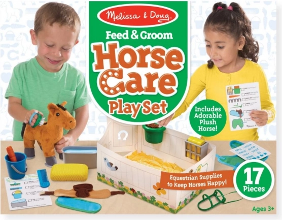 Ovaj njegujući set s mekim plišanim konjićem idealna je igračka za male ljubitelje konja. Uključeni su dodaci poput četke, spužvice, mrkve i hranilice, koji potiču realistično igranje farme i učenje brige o životinjama. Zahvaljujući živim bojama i ugodnim materijalima djeca će obožavati igru.