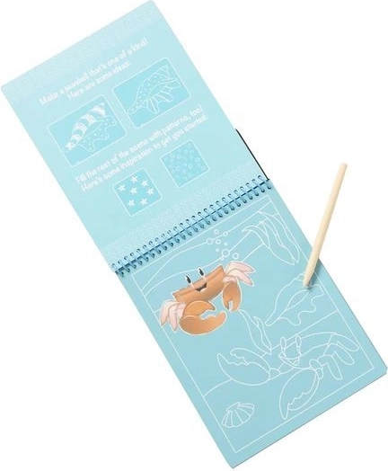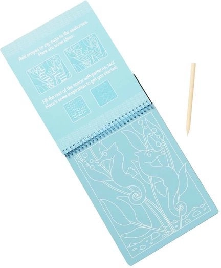 Ovaj strugalica blok s motivima morskog života donosi djeci beskrajne sate kreativne zabave. Dovoljno je nježno sastrugati gornji sloj posebnim drvenim štapićem i šarene scene s ribicama, kornjačama ili morskim konjicama postupno će se pojaviti. Aktivnost je intuitivna, poticajna i bez potrebe za bojama ili ljepilom.