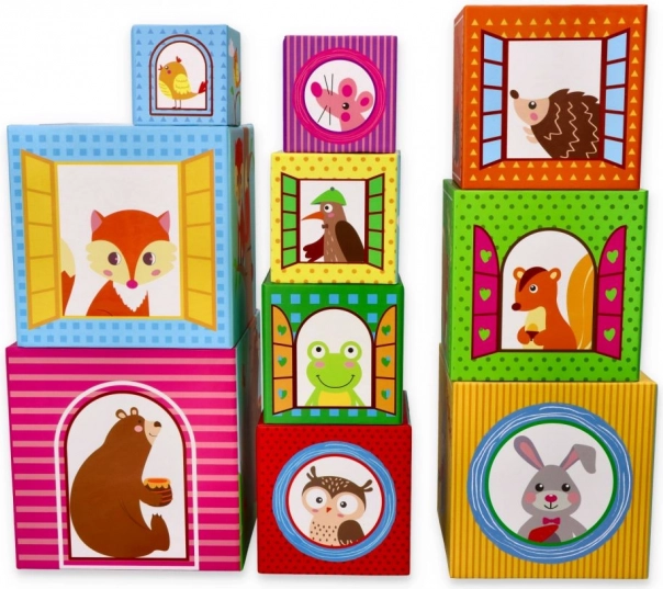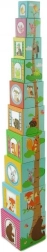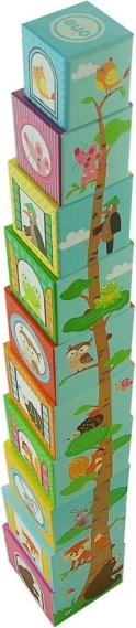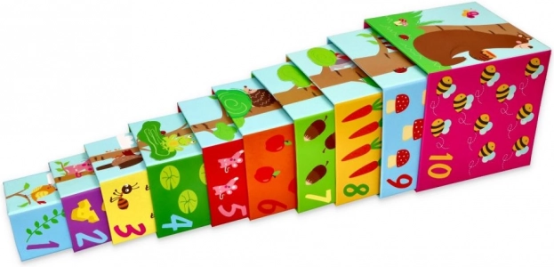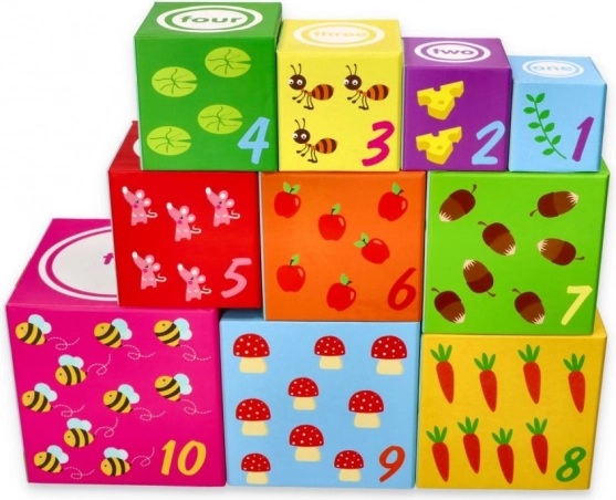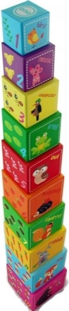 Ovaj set sadrži ukupno deset kocaka izrađenih od kartonskog materijala, koje omogućuju slaganje tornja od najveće do najmanje kocke za bolju stabilnost i zabavu. Idealno za djecu od 12 mjeseci, uz ispunjene sve sigurnosne norme uključujući CE izjavu o sukladnosti.