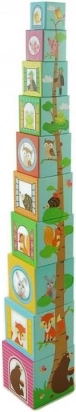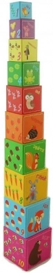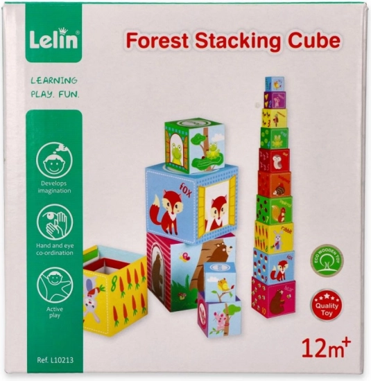 Otkrijte svijet šumske zabave i učenja s našim sklopivim kockama marke Lelin. Izvrsna igračka za djecu koja potiče maštu, koordinaciju ruku i očiju te aktivnu igru. Svaka je kocka ukrašena ilustracijama šumskih životinja i brojevima kako bi djeca učila kroz igru. Dimenzije najveće kocke su 15 x 15 x 15 cm, dok je najmanja kocka 6 x 6 x 6 cm. Ukupna visina tornja doseže 106 cm.
