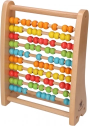 Postavljeno je na robustan drveni okvir koji osigurava trajnost i stabilnost, pa je idealno za čestu upotrebu kod kuće i u vrtiću. Šarene perlice olakšavaju razumijevanje brojčanih odnosa i osnovnih matematičkih operacija.