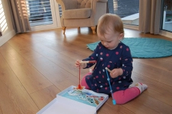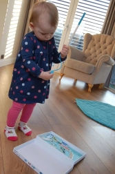 Dijete tijekom igre koristi drveni štap s magnetom, što pomaže razvoju koordinacije ruka-oko i fine motorike.