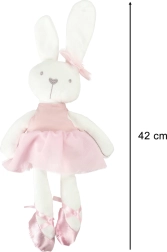 Ova mekana zečica u ružičastoj tutu suknjici donosi djeci udobnost, osjećaj sigurnosti i puno zabave u kreativnoj igri. Ugodna je na dodir i lagana za nošenje, pa će brzo postati omiljena igračka kod kuće i na putu.