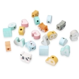 Naše pastelne navlake perlica idealne su za male dizajnere već od 18 mjeseci. Svaka perlica nudi malu pustolovinu – bilo da je riječ o slatkom licu životinjice ili geometrijskom obliku u pastelnoj nijansi. Zajedno čine jedinstvenu kolekciju koja inspirira na kreativno stvaranje vlastitih uzoraka i kompozicija. Ova igračka nije samo zabava, već predstavlja prave alate kreativnosti!