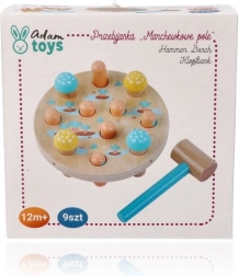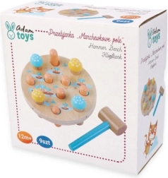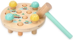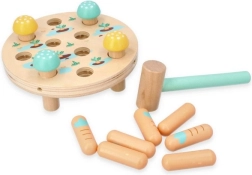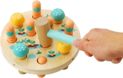 Drvena igračka Mrkveno polje nudi okruglu drvenu bazu s rupama za šarene drvene klinove u obliku mrkve. Zadatak djeteta je zasaditi mrkvu pomoću prijateljskog dječjeg čekića s mentolskom ručkom, idealnog za male ručice. Brzim udarcem djeca ne samo da poboljšavaju koordinaciju oko-ruka i fine motoričke vještine, već također počinju razumijevati uzročne veze. Nakon završetka igre, dovoljno je okrenuti bazu, izvući mrkve i započeti ispočetka!