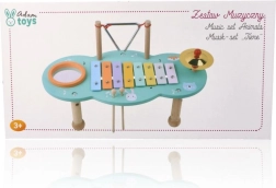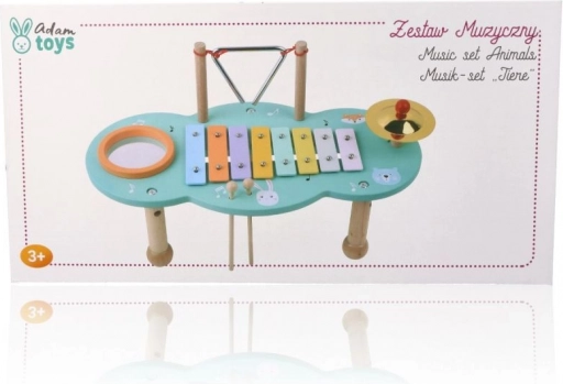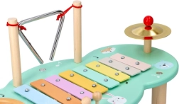 Otkrijte zabavni dječji glazbeni stolić koji spaja ksilofon, triangl i činel u jednu kreativnu cjelinu. Stabilna drvena konstrukcija s dražesnim ilustracijama i 2 batića potiče djecu na istraživanje ritma i zvukova. Igra razvija finu motoriku, koordinaciju i glazbeni sluh. Dimenzije 43,5 × 23 × 23,5 cm, preporučeno od 3 godine.