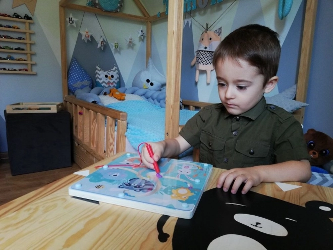 Veseli magnetični labirint sa šumskim životinjama pretvara učenje u igru. Dijete pomoću magnetne olovke vodi kuglice kroz zamršene staze, pridružuje boje te vježba koncentraciju i preciznost. Zahvaljujući zatvorenom dizajnu kuglice se ne gube, a igra je sigurna kod kuće i na putovanjima.