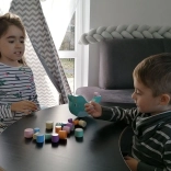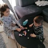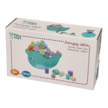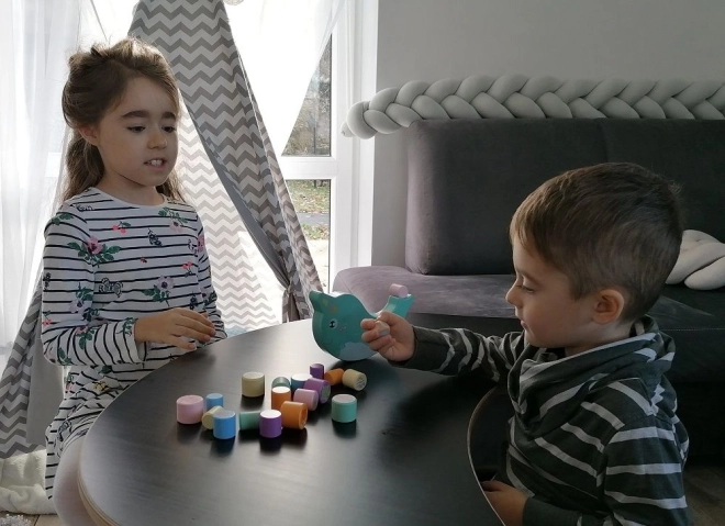 Djeca slažu drvene valjčiće na njihajuću bazu u obliku narvala i vježbaju finu motoriku, koordinaciju i procjenu. Svaki potez je izazov kako bi se održala stabilnost.