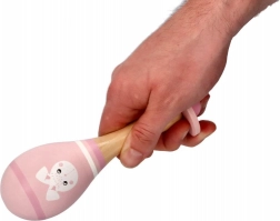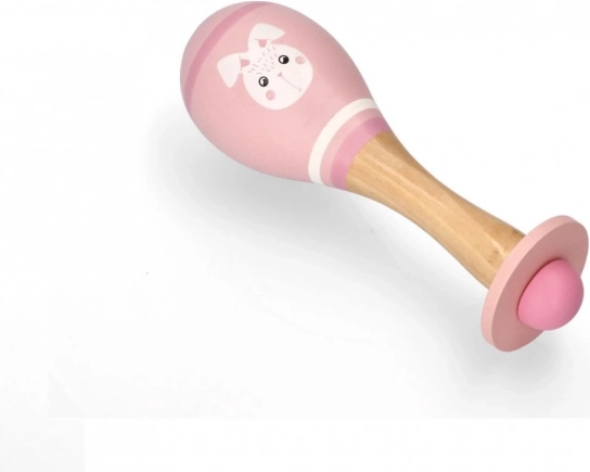 Ovaj preslatki ružičasti drveni marakas sa zečićem izvrstan je prvi glazbeni instrument za najmlađe. Nježan zvuk zvečke potiče razvoj sluha, ritma i prirodne znatiželje, dok su oblik i veličina savršeno prilagođeni malim dječjim ručicama. Prirodno drvo, glatka površina i pažljivo zaobljeni rubovi osiguravaju sigurnu igru svaki dan.