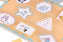 Svaki oblik ima jasnu boju i slatku ilustraciju životinjice. Djeca prirodno usvajaju prepoznavanje oblika i boja te proširuju rječnik.