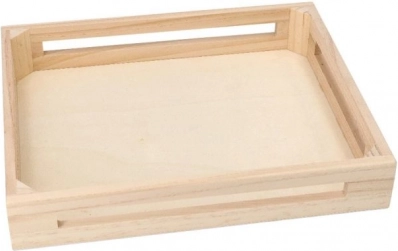 Svi dijelovi seta uredno su spremljeni u drvenom pladnju s ručkama – jednostavno prenošenje, red i sigurno skladištenje kod kuće i u vrtiću.