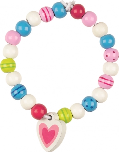 Šarene drvene perle GOKI: 46 kom, promjer 8 mm, elastična uzica. Sigurne, zdravstveno ispravne i održive. Odlično za djecu od 3 godine.