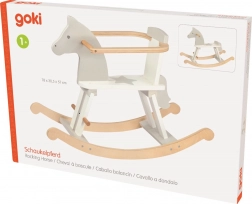 Konjić za ljuljanje Goki ističe se modernim i šarenim dizajnom inspiriranim skandinavskim stilom. Zahvaljujući kvalitetnom drvu i pažljivoj izradi pruža sigurnu i udobnu vožnju za najmlađu djecu. Sigurnosni okvir lako se može ukloniti kada dijete poraste i dosegne nogama tlo.