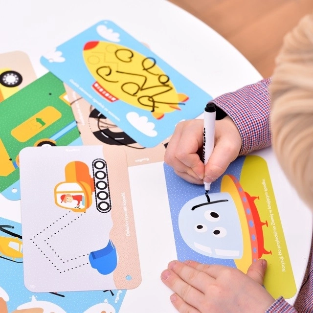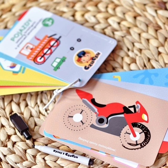 Set CzuCzu Vozila donosi djeci mnoštvo pametnih aktivnosti s motivima različitih prijevoznih sredstava. Knjižica na vezici prepuna je raznobojnih ilustracija i zadataka koje je, zahvaljujući brisivom flomasteru, moguće rješavati iznova i iznova. Praktično pakiranje s ručkom odlično je za kod kuće, u gostima ili u automobilu.