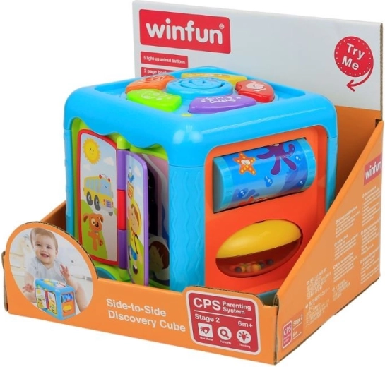 Svaka strana kocke pruža vašem djetetu mnogo atrakcija i iznenađenja koja će dugo zaokupiti njegovu pažnju. Igračka stimulira sva djetetova osjetila i potiče njegov razvoj. Žive, jarke boje, ugodni zvukovi i bljeskajuća svjetla potiču vaše dijete na igru. Edukativna kocka je sjajna zabava na dugo vrijeme.