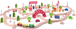 Ova drvena željeznička pruga idealna je za djecu od tri godine. Potiče suradnju zahvaljujući brojnim dijelovima koje djeca mogu slagati zajedno.